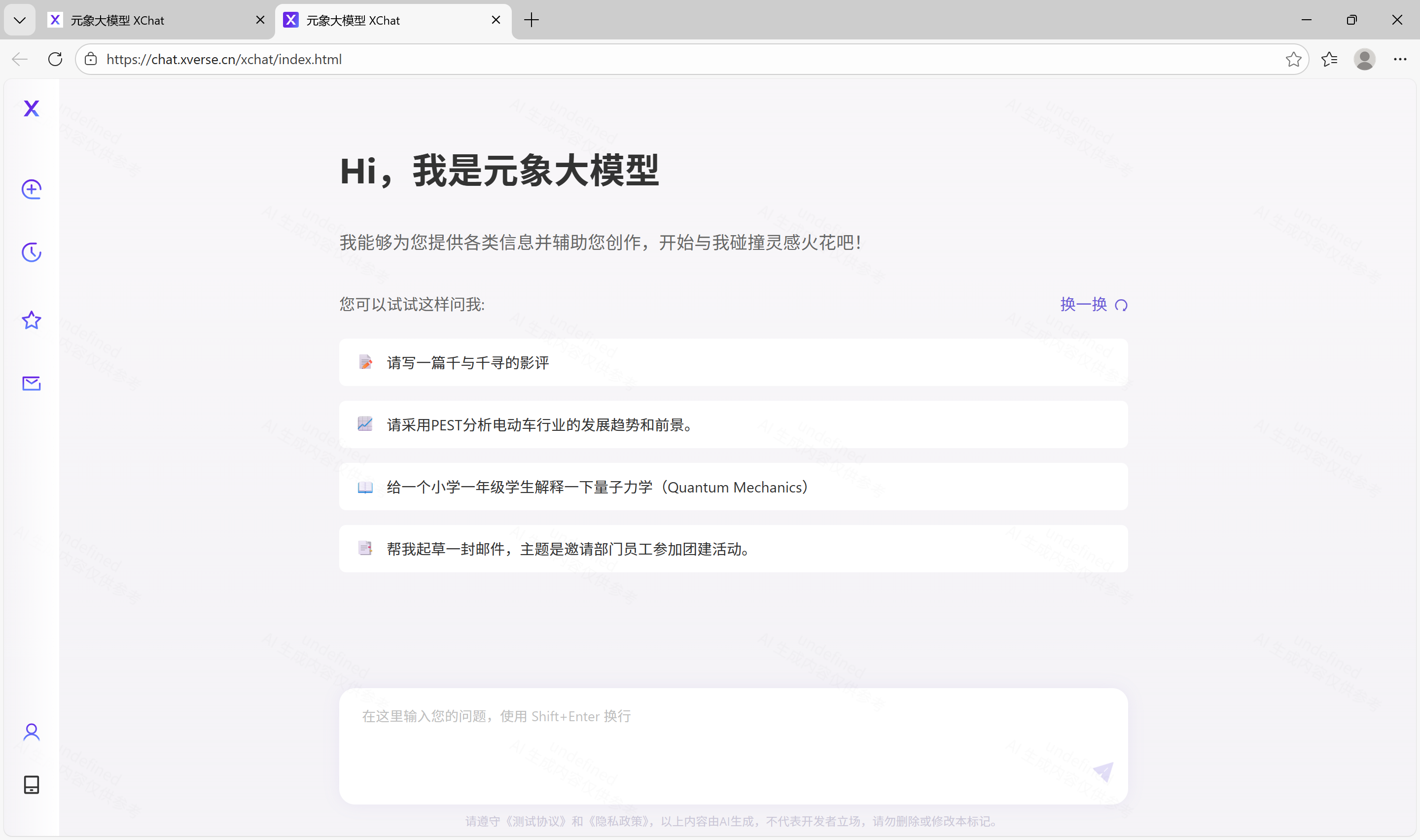 - 在线体验:访问元象官方网站的对话产品页面,直接与模型进行交互。